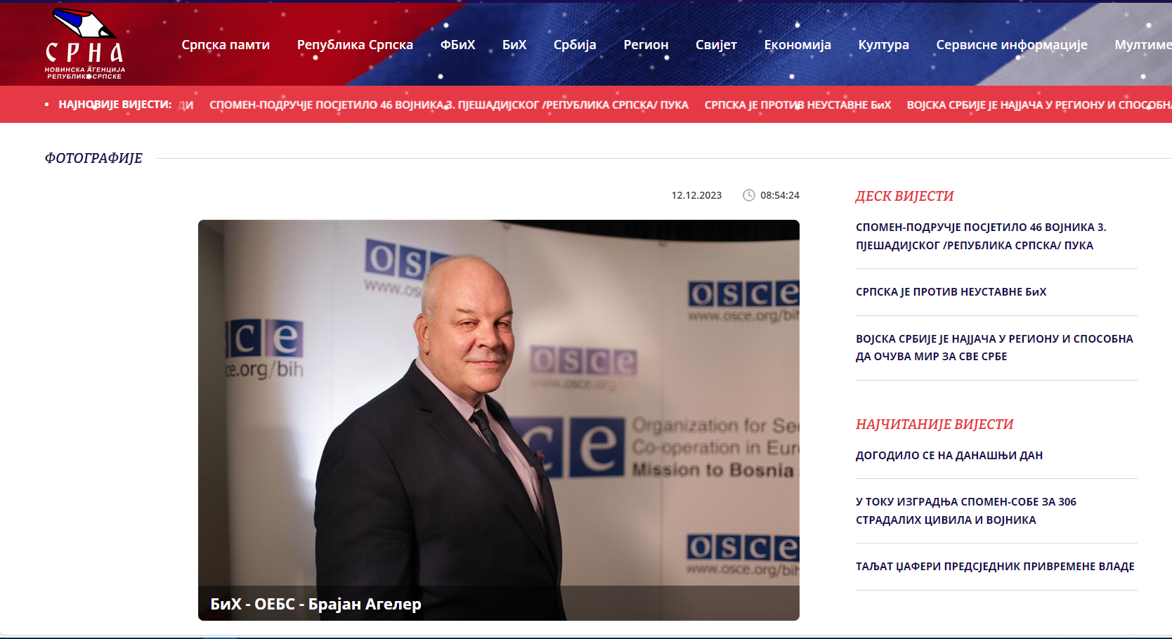 Ambassador Brian Aggeler's interview for SRNA, 12 December 2023