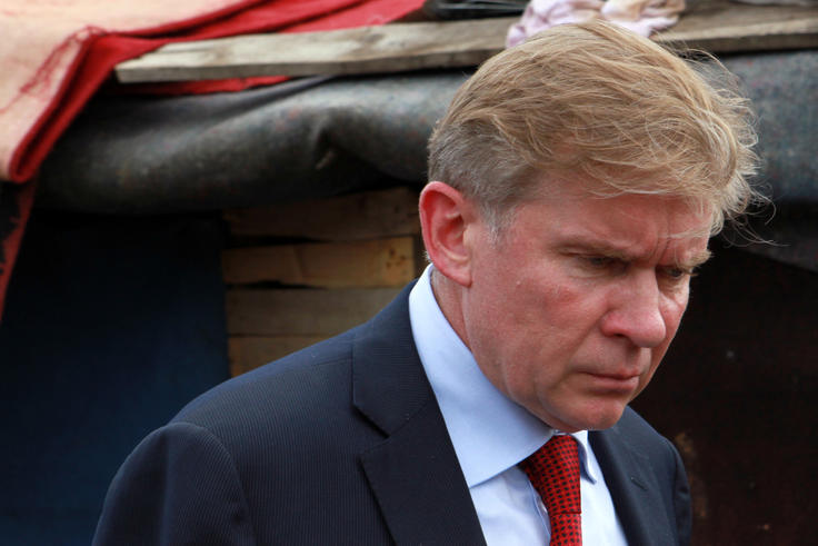 The OSCE Chairperson-in-Office, Lithuanian Foreign Minister Audronius Ažubalis on a visit to Konik refugee camp, 5 July 2011.