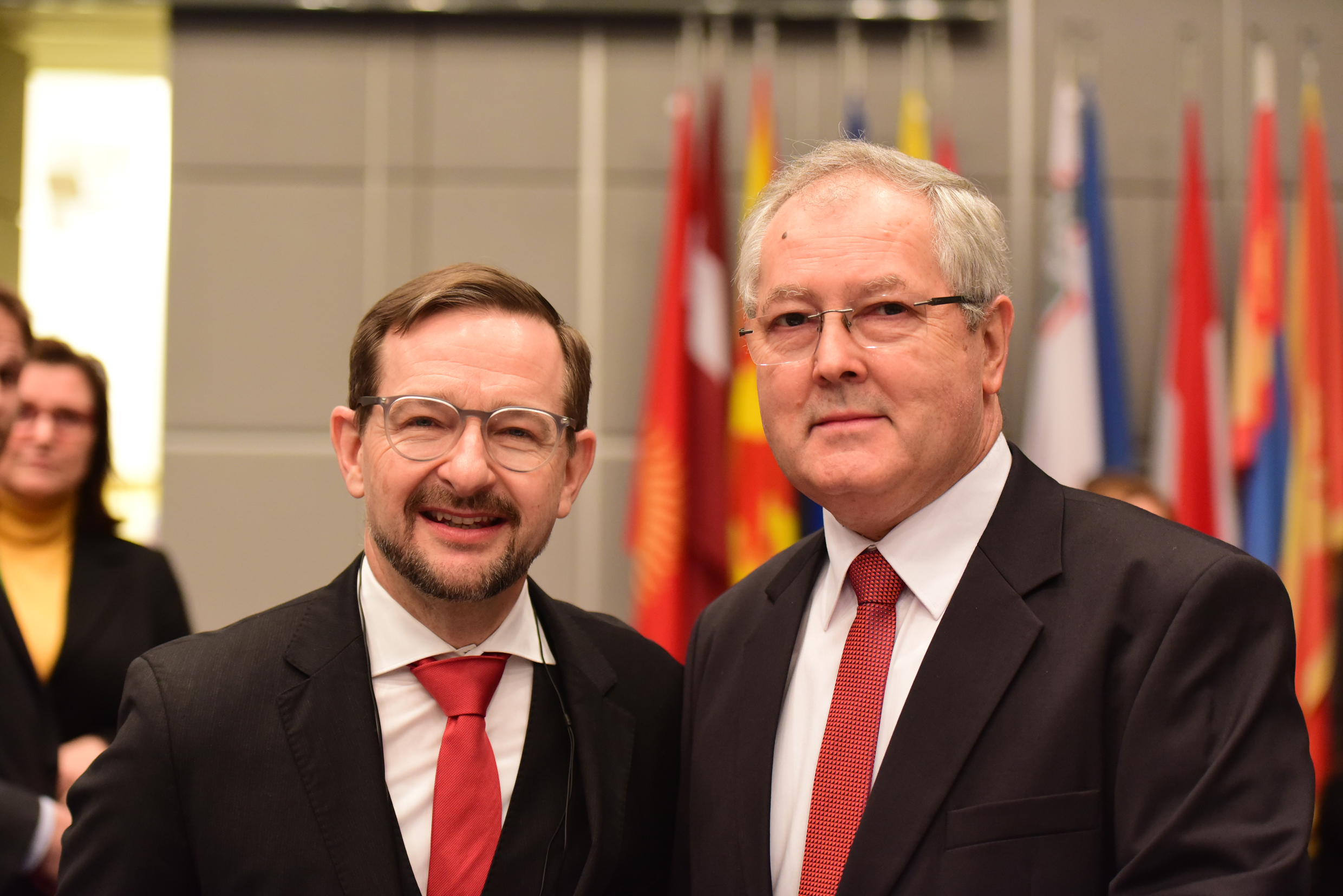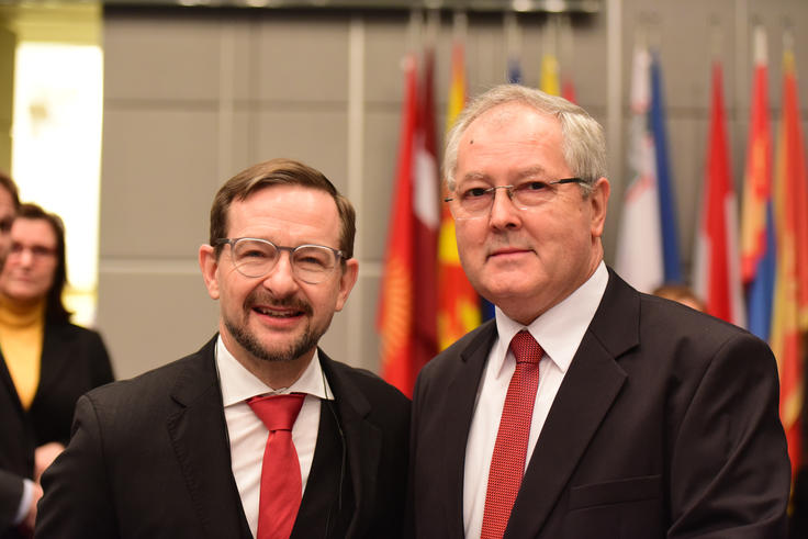 OSCE Secretary General Thomas Greminger (l) and Chief Observer, Ambassador Gyorgy Varga at the meeting of the OSCE Permanent Council, Vienna, 14 February 2019.