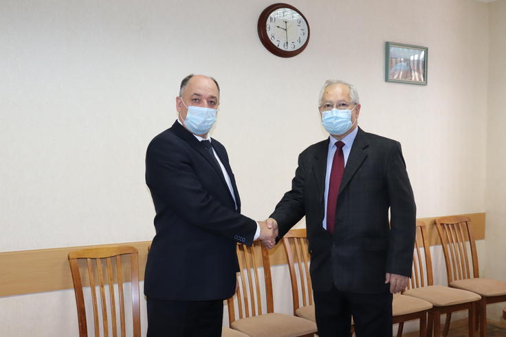 Chief Observer, Ambassador Gyorgy Varga (r) met Mr. Vladimir Yevgenevich Shevchenko, the Mayor of the city where the Mission is located - Kamensk-Shakhtinskiy, 20 April 2021.