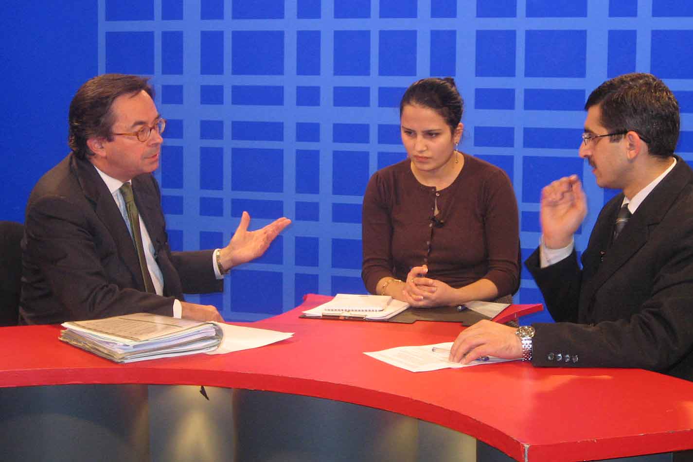 ODIHR Director Ambassador Christian Strohal (left) gives an interview to ANS TV during an official visit to Baku, 22 December 2006.