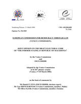 Joint Opinion on the Draft Electoral Code of the former Yugoslav Republic of Macedonia