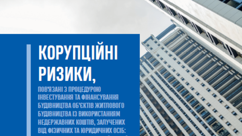This study provides comprehensive analysis of corruption risks in the field of housing construction financing in Ukraine, in particular those that arise in the context of transitional regulatory models and existing state control practices. It covers  not only on the analysis of documented violations, but focuses on identified vulnerabilities in the legal and institutional environment, potential opportunities for corruption, as well as outcomes of modeling of possible situations where such corruption incidents may happen. Such approach allows to identify risks at an early stage and form an analytical basis for developing targeted recommendations to increase transparency and efficiency of regulation in this area.