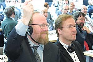 voting at the 11th OSCE Parliamentary Assembly annual session in Berlin, July 2002.