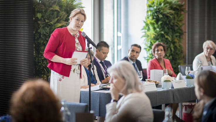 Franziska Giffey, Germany’s Federal Minister for Family Affairs, Senior Citizens, Women and Youth, addresses the gender lunch at the OSCE Parliamentary Assembly’s 27th Annual Session in Berlin, 9 July 2018.