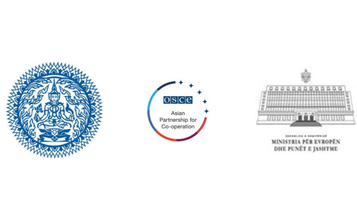 The logos of the Ministry of Foreign Affairs of the Kingdom of Thailand (left), the OSCE Asian Partnership for Co-operation (middle) and the Ministry of Foreign Affairs of Albania.