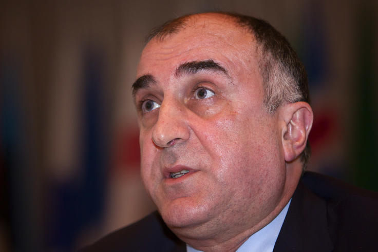 Azerbaijani Foreign Minister Elmar Mammadyarov addressing the OSCE's Permanent Council in Vienna, 14 May 2013.