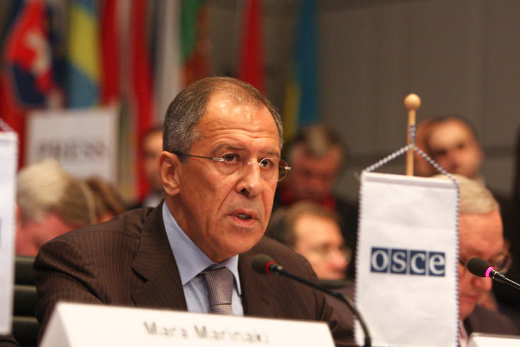 Russian Foreign Minister Sergey Lavrov speaks at the OSCE Annual Security Review Conference on 23 June 2009 in Vienna.