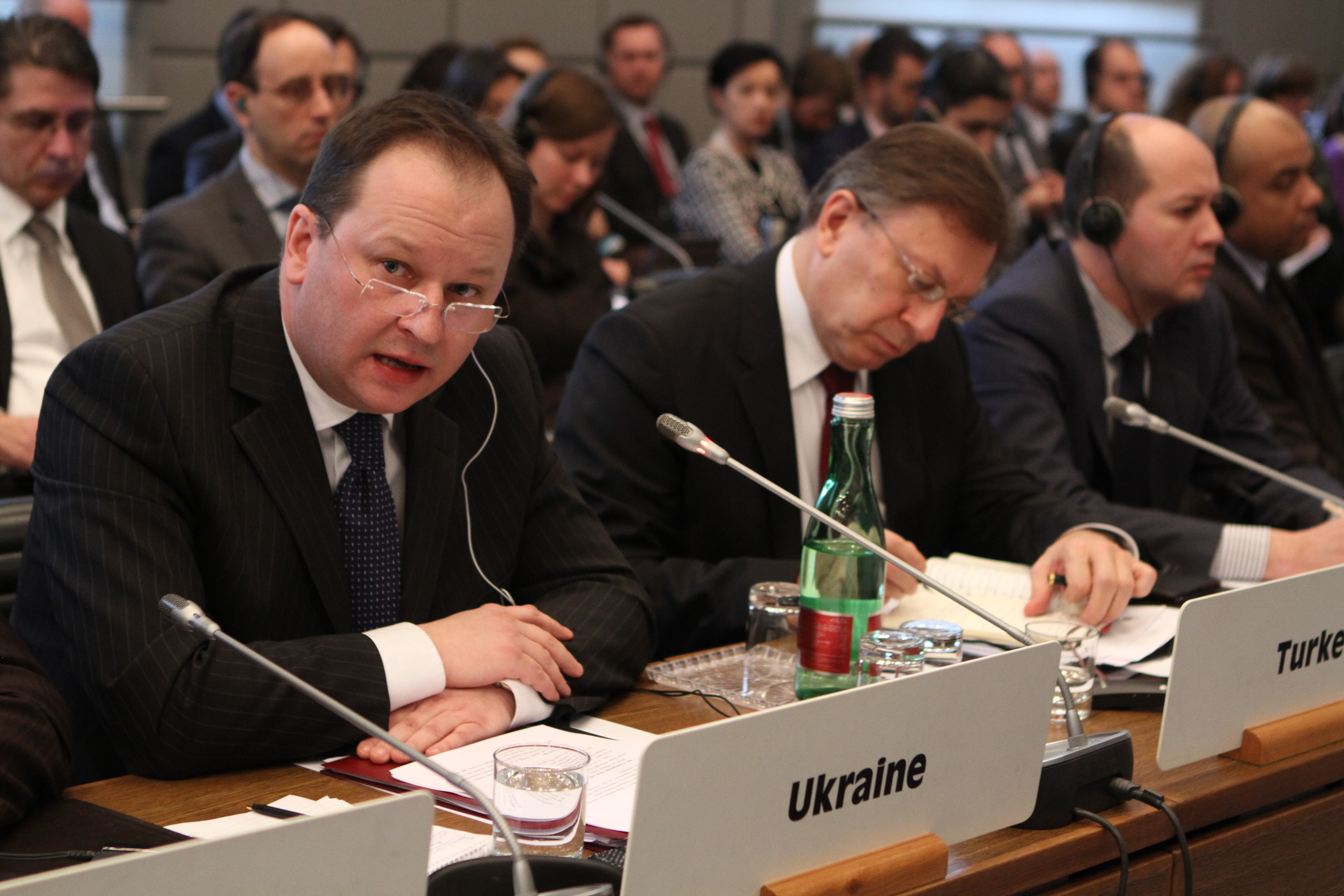 Ihor Prokopchuk, Ambassador of Ukraine to the OSCE, delivering a speech at a special session of the OSCE Permanent Council on the situation in Ukraine, Vienna, 3 March 2014.
