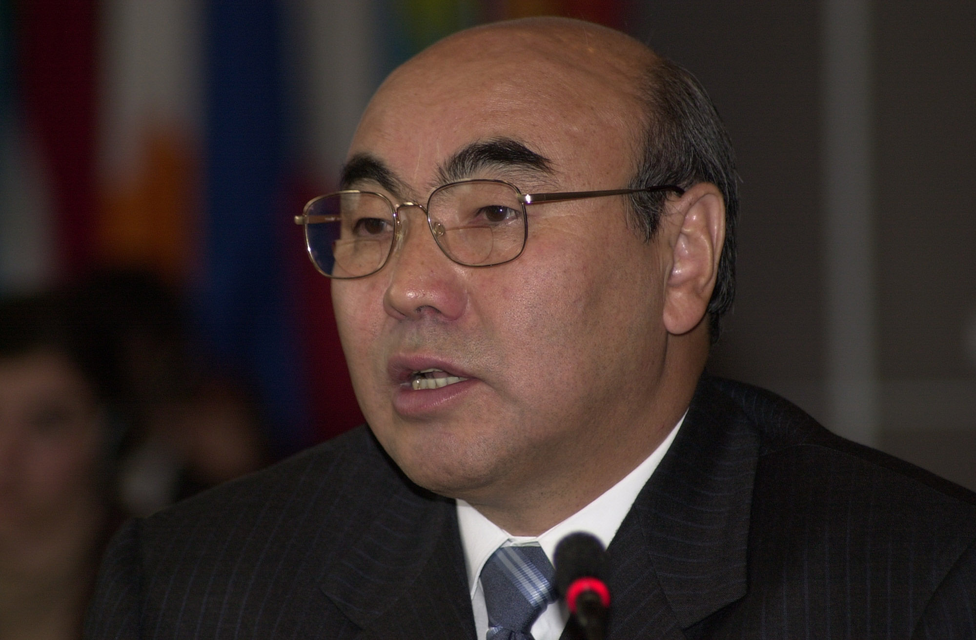 The President of the Kyrgyz Republic, Askar Akaev, addresses the