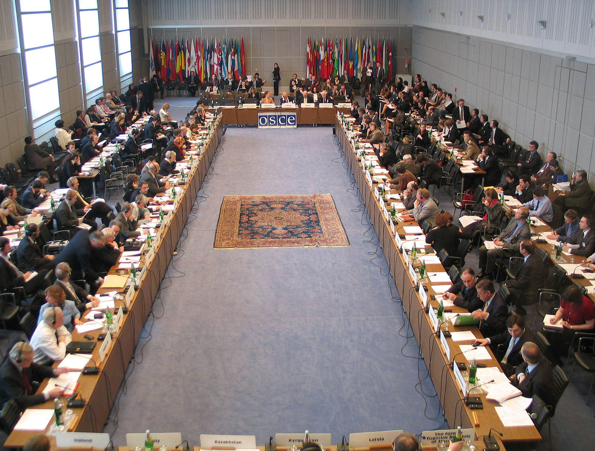 General view of the OSCE Permanent Council meeting, at the Hofburg Congress Centre in Vienna.