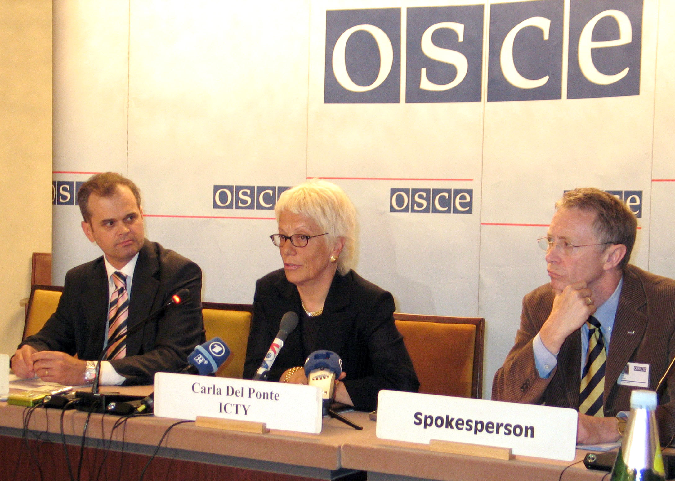 Chief Prosecutor of the International Criminal Tribunal for the former Yugoslavia, Carla Del Ponte, speaks at a news conference at the OSCE in Vienna, 19 May 2005.