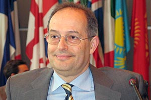 Miklos Haraszti, the OSCE Representative on Freedom of the Media, before delivering a report at the Permanent Council in Vienna, 14 July 2005.