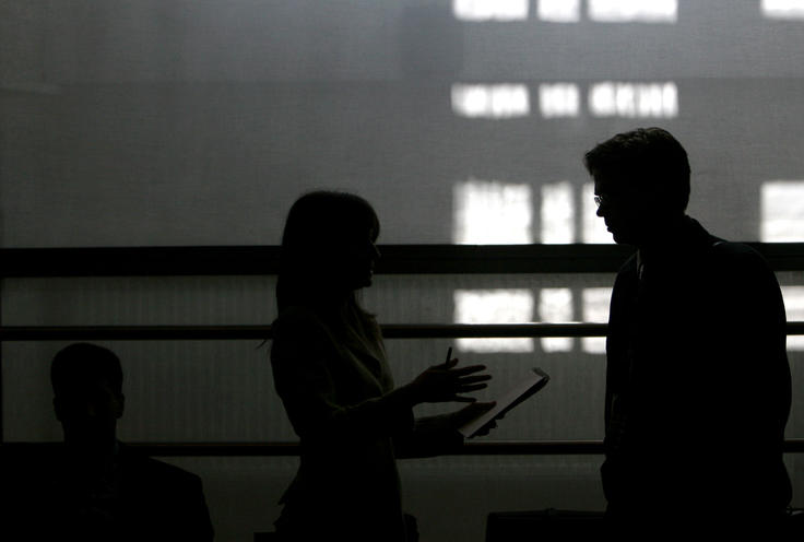 Members of delegations are silhouetted as they stand next to a window before the start of a Permanent Council meeting in Vienna, 18 May 2006.