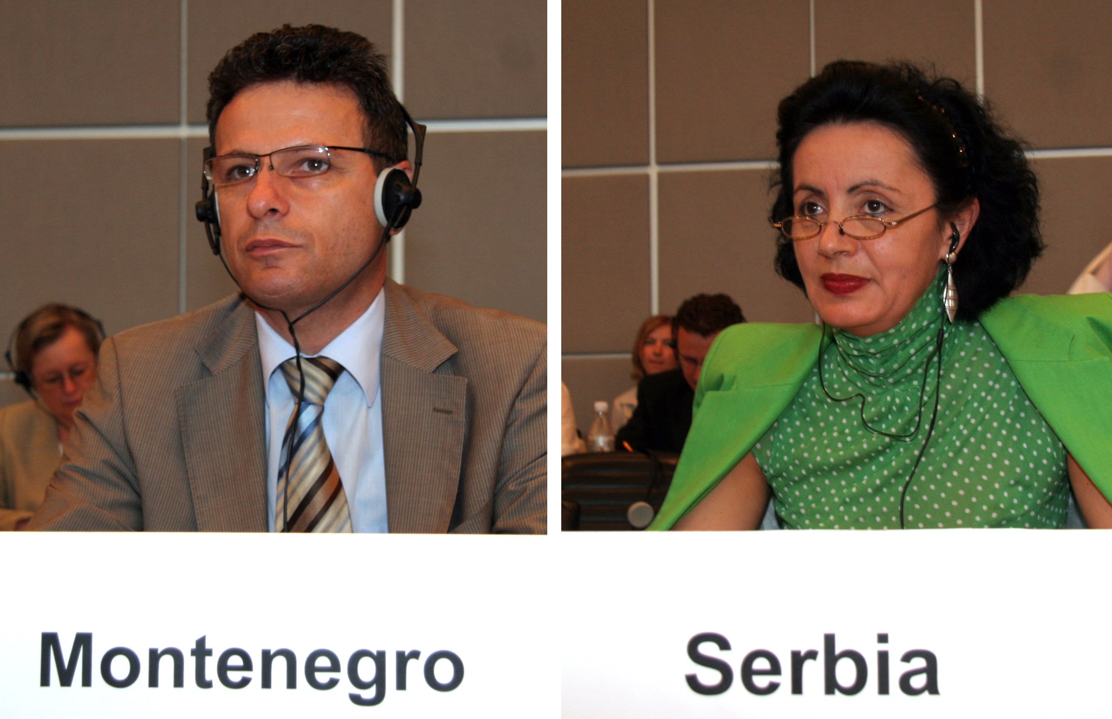 Combo photo shows the Montenegrin Head of Delegation, Vesko Garcevic (left), and the Charge d'Affaires of Serbia's Delegation, Miroslava Beham, at the Permanent Council, 22 June 2006. Montenegro became the OSCE's 56 participating State.