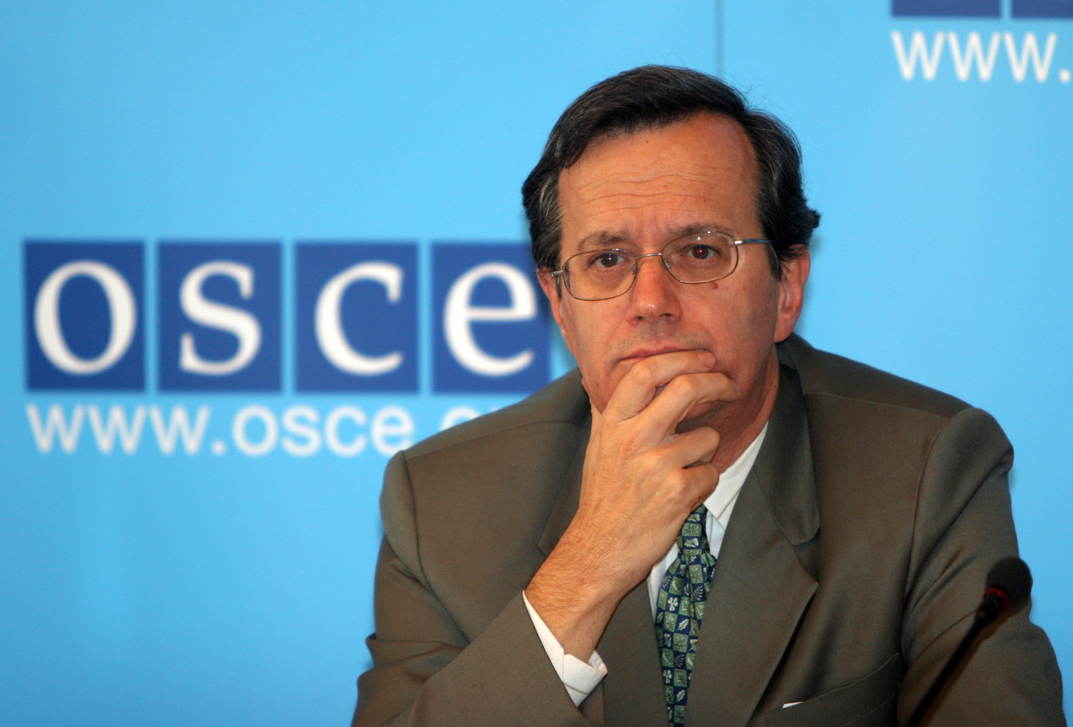 OSCE Secretary General Marc Perrin de Brichambaut listens to a question during a news conference in Vienna, 27 October 2006.