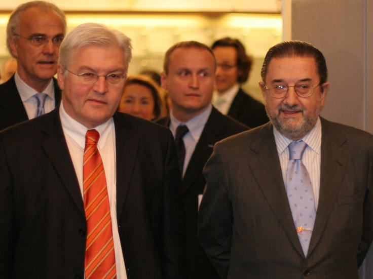 German Foreign Minister Frank-Walter Steinmeier (left), whose country holds the European Union presidency, with the Chairman of the OSCE Permanent Council, Ambassador Carlos Sanchez de Boado of Spain, at the Hofburg in Vienna, 18 January 2007.