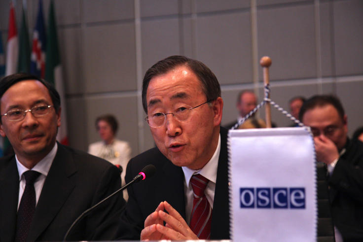 UN Secretary-General Ban Ki-moon addresses the OSCE Permanent Council in Vienna, 8 April 2010.