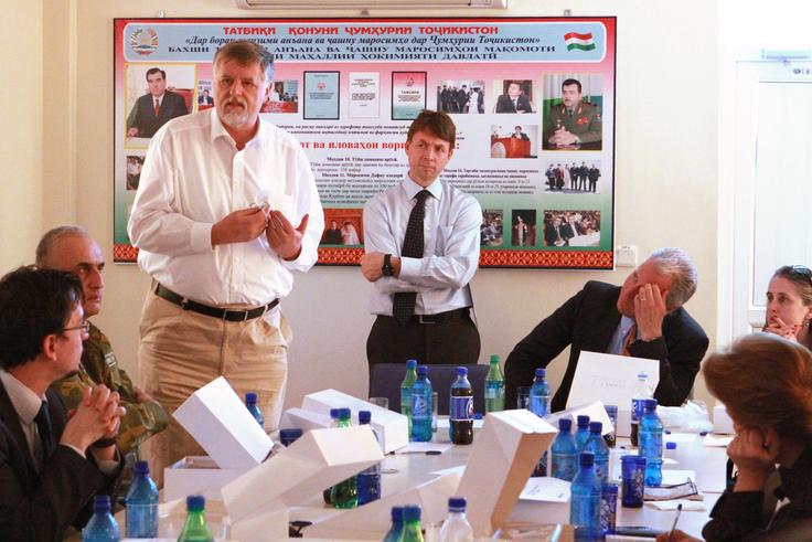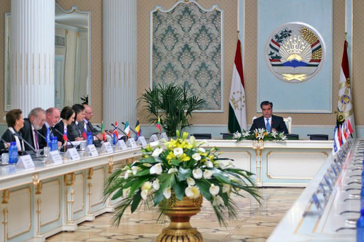 A group of 17 OSCE Ambassadors arrived in Dushanbe on 4 April 2011 for a week-long trip to Tajikistan and Kyrgyzstan to familiarize themselves with how the Organization addresses transnational threats in the region.