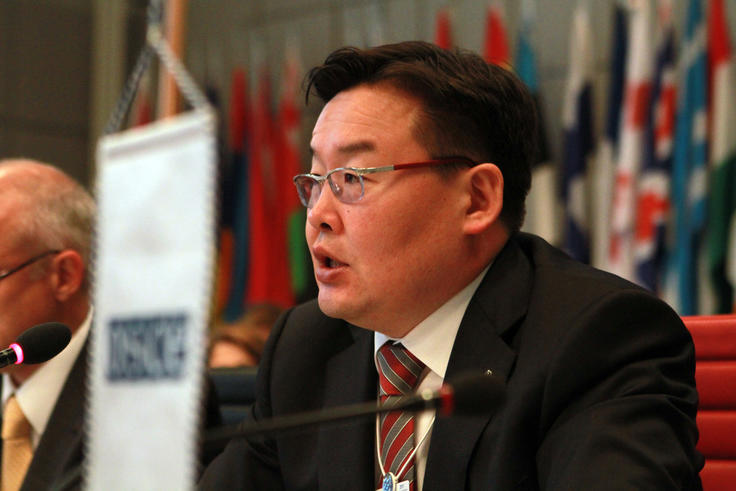 Minister for Foreign Affairs and Trade of Mongolia Gombojav Zandanshatar addresses the OSCE Permanent Council in Vienna, 9 June 2011.