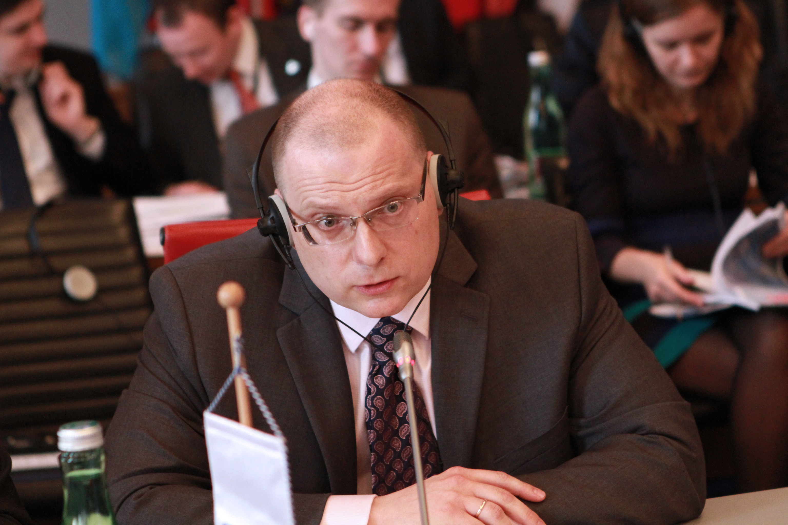 The Russian Foreign Ministry’s Commissioner on Human Rights, Democracy and the Rule of Law Konstantin Dolgov addresses the Permanent Council, Vienna, 19 April 2012.