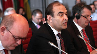 VIENNA, 14 June 2012 - Albanian Deputy Prime Minister and Foreign Minister Edmond Haxhinasto, speaking today in Vienna in his capacity as the Chairperson of the Committee of Ministers of the Council of Europe, outlined his country’s Chairmanship priorities to OSCE participating States and pointed to areas for further strengthening co-operation between the two organizations.