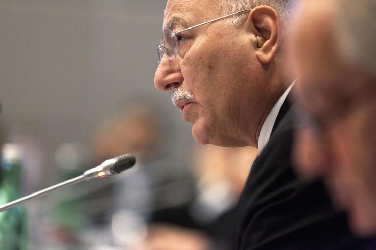 The Secretary General of the Organisation of Islamic Cooperation, Ekmeleddin İhsanoglu, addresses the OSCE's Permanent Council in Vienna, 29 November 2012.