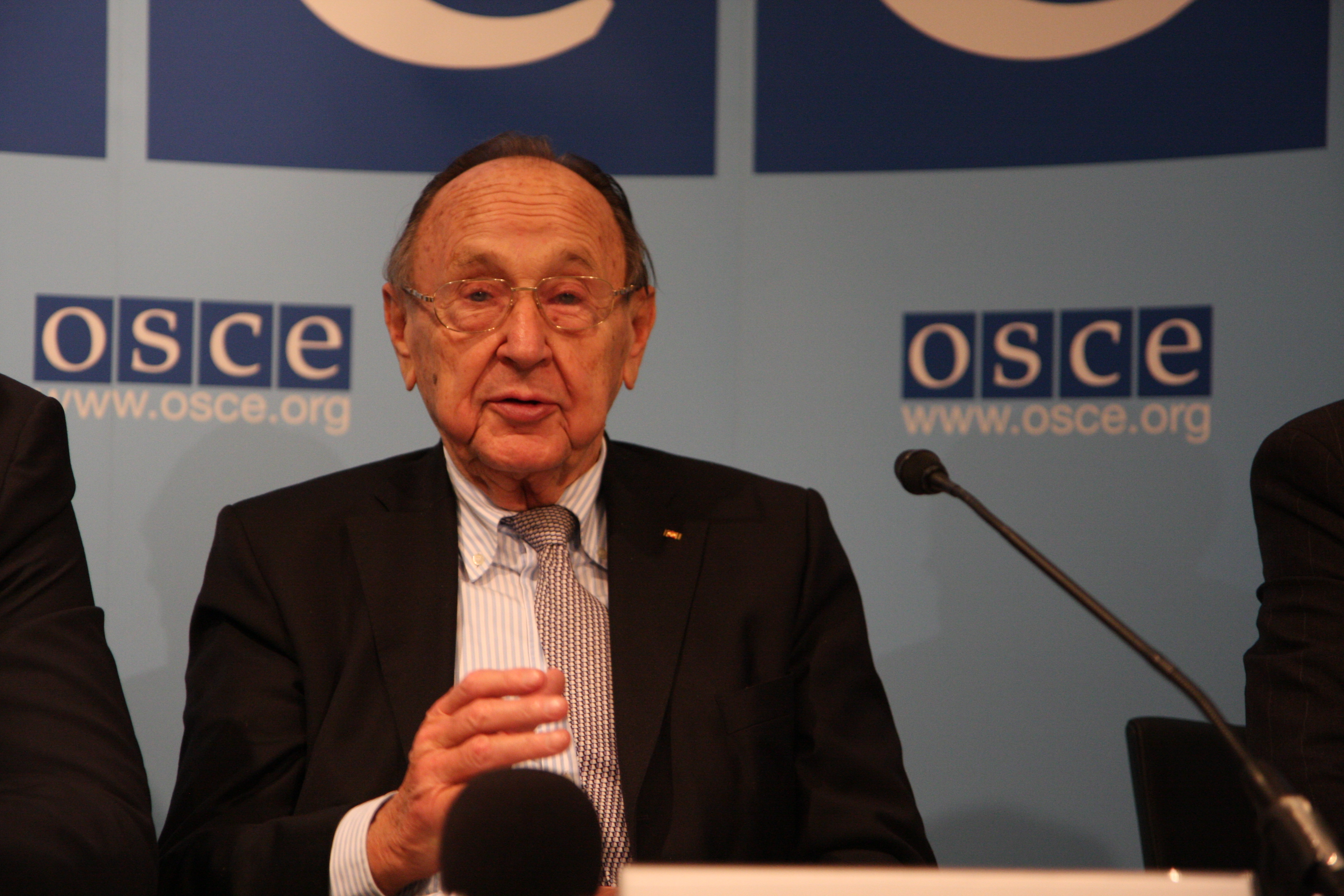 Former German foreign minister Hans-Dietrich Genscher speaks at an OSCE event to commemorate the 20th anniversary of the fall of the Berlin Wall, Vienna, 6 November 2009.