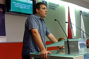 Igor Jezdimirovic talks about the possibilities for youth participation in EU programmes at the Environment for Europe conference, Belgrade, 4 June 2007.
