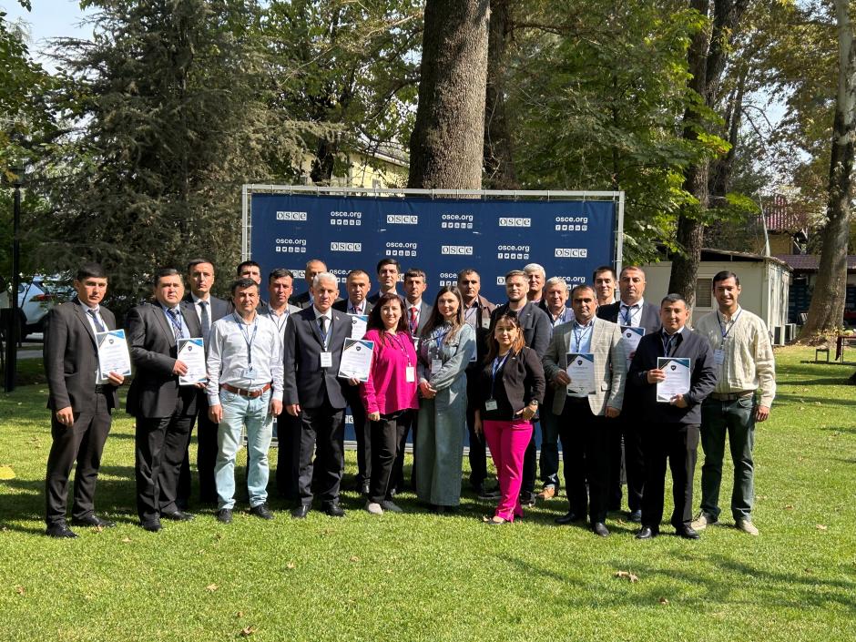 Border officers from the Analytical Department of Tajikistan’s Border Troops, along with international and local experts and OSCE representatives, gather for a group photo following the conclusion of a five-day cybersecurity training organized by the OSCE Programme Office in Dushanbe, 10 October 2025.