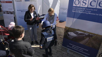 The two missions support mine action in line with their respective mandates. The OSCE Special Monitoring Mission to Ukraine pays special attention to the problem of mine contamination in its monitoring, reporting and dialogue facilitation. The Mission records and publicly reports about the presence of mines and aids demining in eastern Ukraine by facilitating localized ceasefires.