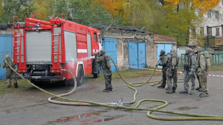 Excersise on response to chemical emergency situation, conducted with OSCE support in Kramatorsk, Eastern Ukraine, in summer 2017.