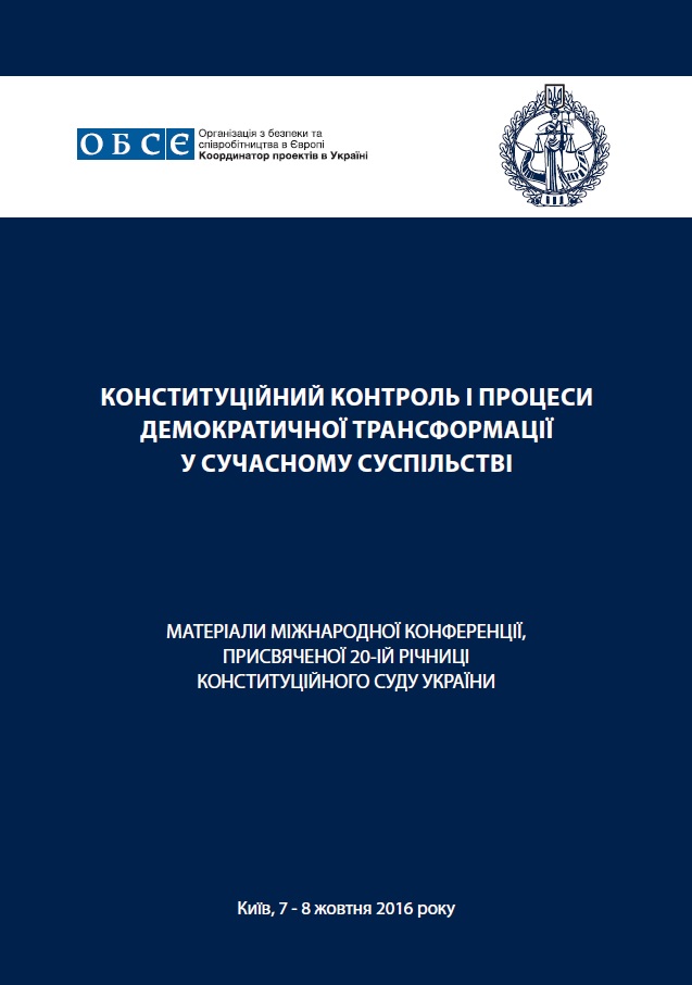 Cover of publication "Constitutional Control and the Process of Democratic Transformation of the Modern Community. An International Conference Dedicated to the 20th Anniversary of the Constitutional Court of Ukraine Collection of Papers"
