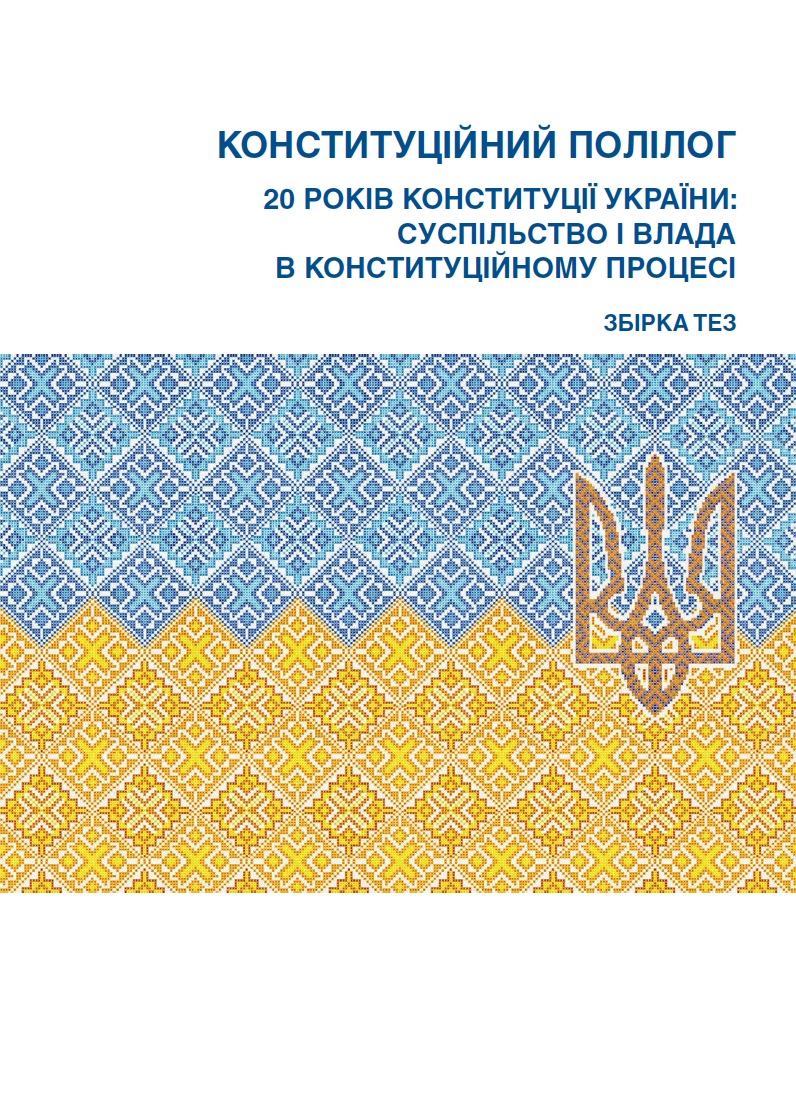 Cover of publication "Constitutional Polylogue: 20th Anniversary of the Constitution of Ukraine: A Society and Government in the Constitutional process. Collection of the International Conference Papers"
