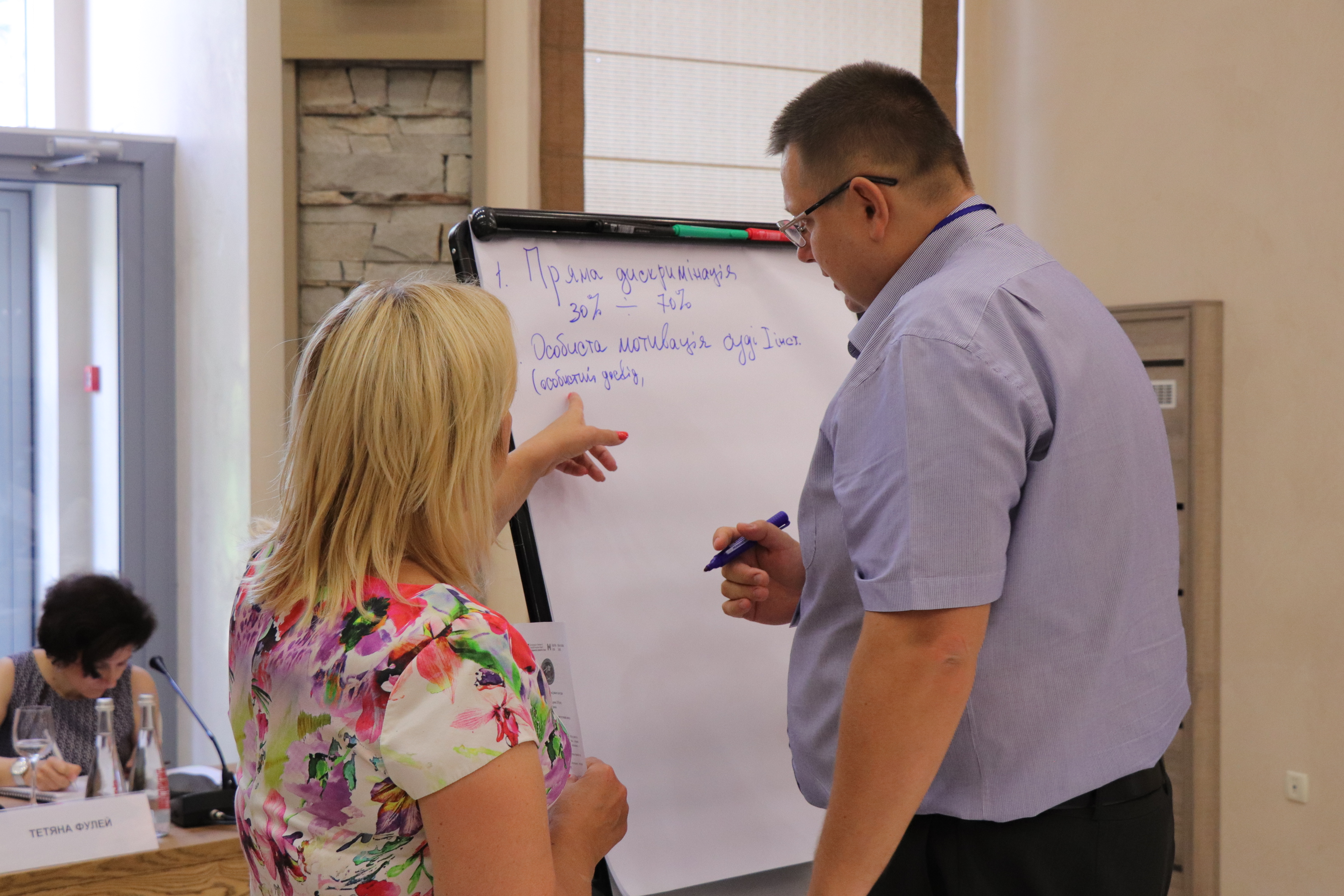 Ukrainian judges from across the country learn to identify and address gender inequalities and discrimination policies at a training, organised by the OSCE Project Co-ordinator near Kyiv on 3 August 2018. This effort, implemented in partnership with the National School of Judges, aims to create a network of gender focal points who will act as “change agents” for fostering gender sensitive practices in the judiciary.