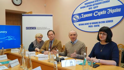 The OSCE Project Co-ordinator in Ukraine, the National Agency of Ukraine for Civil Service, online studio EdEra and Ukrainian School of Governance presented a training programme on improving skills in conflict management and engaging stakeholders in implementing reforms at an event in Kyiv on 25 February 2020. The programme is aimed at public servants of central governmental agencies and local authorities in Ukraine.
