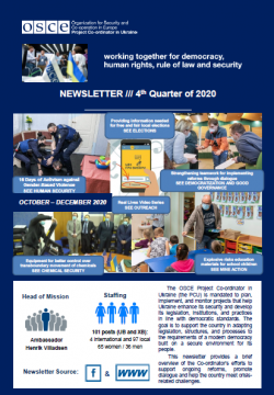 This newsletter provides a brief overview of efforts of the OSCE Project Co-ordinator in Ukraine to support ongoing reforms, promote dialogue and help the country meet crisis-related challenges. It provides a summary of our communications via Facebook page and this website for the indicated period.