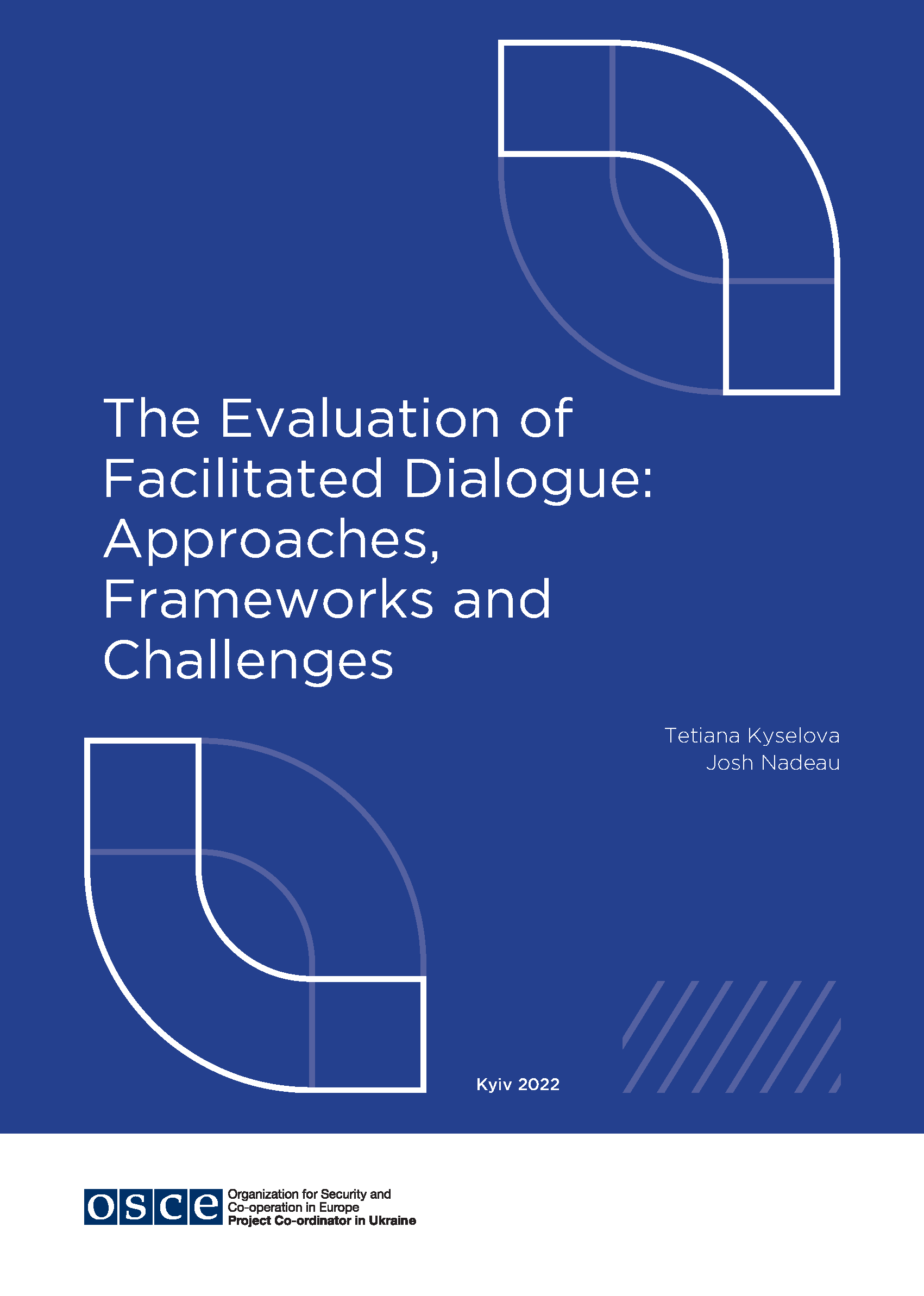 Cover of "Evaluation of Facilitated Dialogue: Approaches, Frameworks and Challenges" publication.