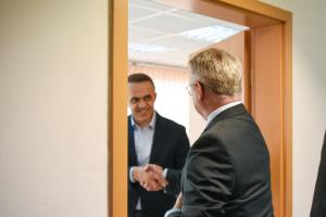 The Head of the OSCE Mission in Kosovo Ambassador Gerard McGurk and Central Election Commission Chair Kreshnik Radoniqi during their meeting ahead of the 12 October 2025 local elections, Prishtinë/Priština, 10 october 2025.