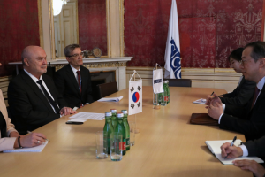 OSCE Secretary General Feridun H. Sinirlioğlu (right) and Deputy Minister for Multilateral and Global Affairs of the Republic of Korea, Kweon Ki-hwan (left), Vienna, 11 November 2025.