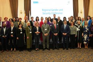 Ambassador Kilian Wahl, President Stevo Pendarovski and Minister of Interior Pance Toshkovski together with Regional Gender and Security Conference participants, hosted by the OSCE Mission to Skopje and ODIHR. Skopje, 7 March 2024.