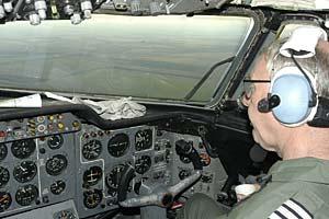 A UK pilot on board a C Mk1 aircraft during a flight over Russia under the Open Skies Treaty, 21 September 2005.