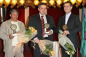 Ramadan Berat (right), the OSCE Mission to Skopje's Senior Assistant on Roma issues, at a ceremony where he received an award from a network of Roma NGOs for his work in improving the situation of the Roma community, 11 April 2008.