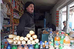 A Tajik vendor in a small food kiosk in Dushanbe, 28 February 2008.