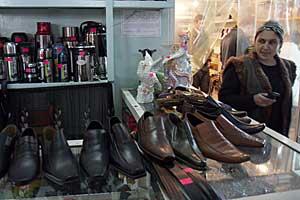 Shoes on sale in a department store in Dushanbe, 28 February 2008.