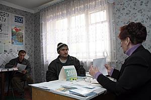 A visitor at a women's resource centre south of Dushanbe, 29 February 2008. Set up with OSCE help, such centres provide free legal, medical and psychological consultations, as well as opportunities for basic education and professional development.