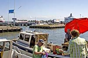 Fishermen sell their catch directly from their boats at the Helsinki Market Square