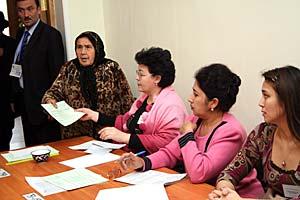 Election officials examine a ballot box during the presidential election in Georgia on 5 January 2008.