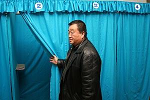 A man casts his ballot at a polling station in Tbilisi during the Georgian presidential election, 5 January 2008.