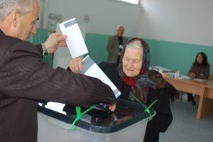 Voters cast their ballots at "Edit Durham" primary school in Mushtisht village, Prizren region, Kosovo, 17 November 2007.